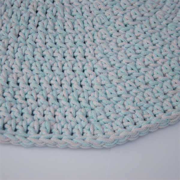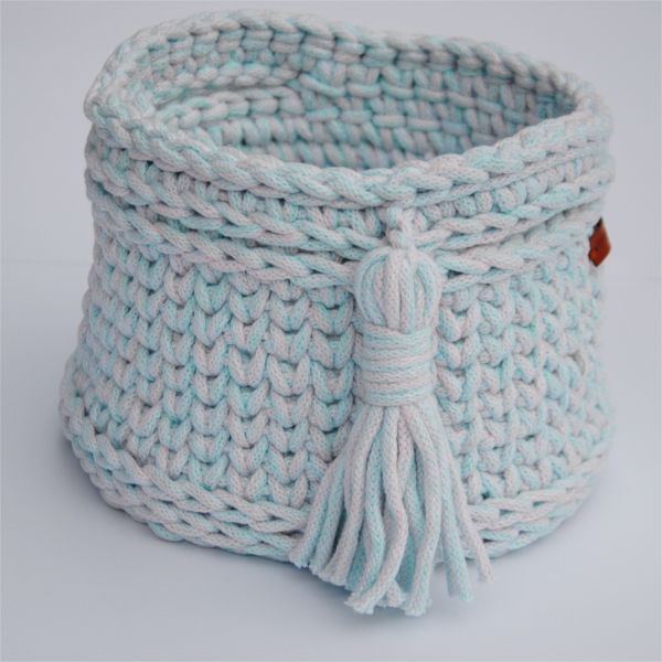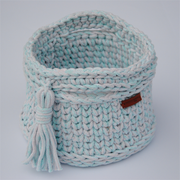 wykonane szydełkiem ze sznurka bawełnianego 5 mm w kolorze różowo miętowym