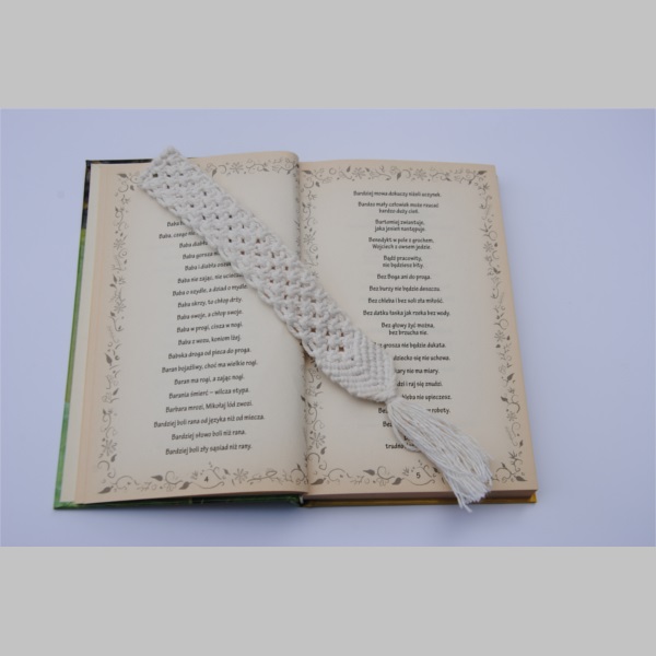 zakładka miękka, wypleciona ręcznie ze sznurka bawełnianego