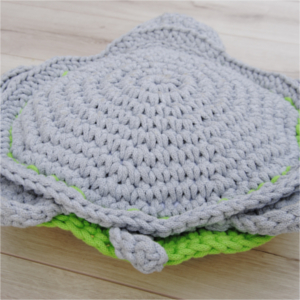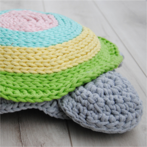 Wykonana ręcznie szydełkiem ze sznurka bawełnianego grubości 5 mm, w środku żółwia wypełnienie: poduszka poliestrowa. Wszystkie elementy połączone szydełkiem bez szwów, co sprawie, że poduszka jest bezpieczna w użytkowaniu :)